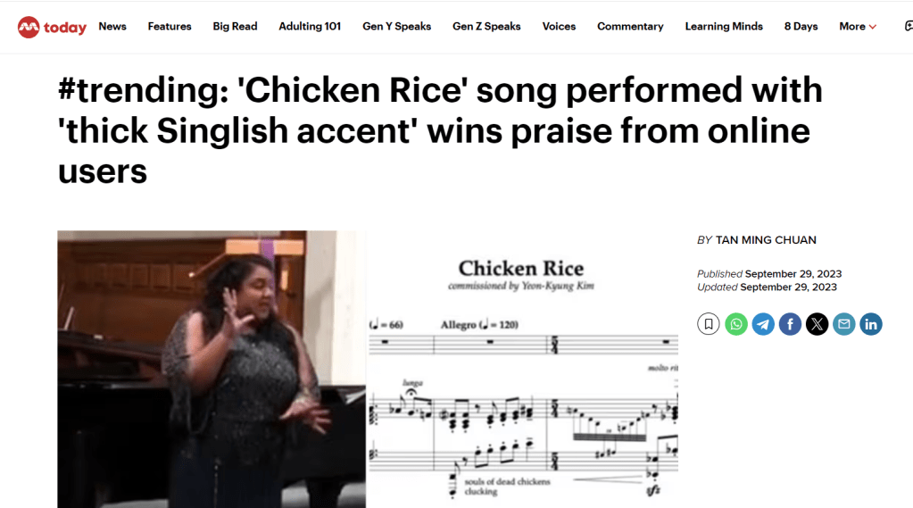 I asked my friend, Nicholas, to write a song set to poetry written in his mother tongue – Singaporean colloquial English, ‘Singlish’. He was finishing his doctorate at the University of Cincinnati, College-Conservatory of Music, while back home in Singapore. Nicholas couldn’t find good Singlish poetry and asked Janani to write the texts, which I think was one of the best decisions he could ever make. 😉 In March 2023, ‘SingBites’ was premiered in Ohio, U.S.A.