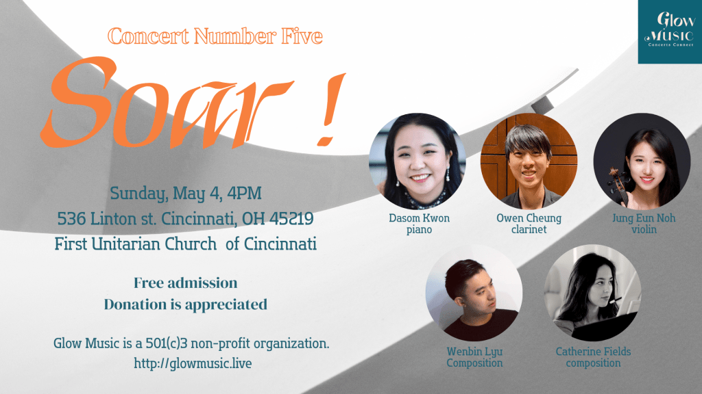 Donations from today will support plans for Glow Music: inviting a bigger group of performers, commissioning more composers, having more than one concert a year, and inviting more talents to the Greater Cincinnati Area. Make your donation today!